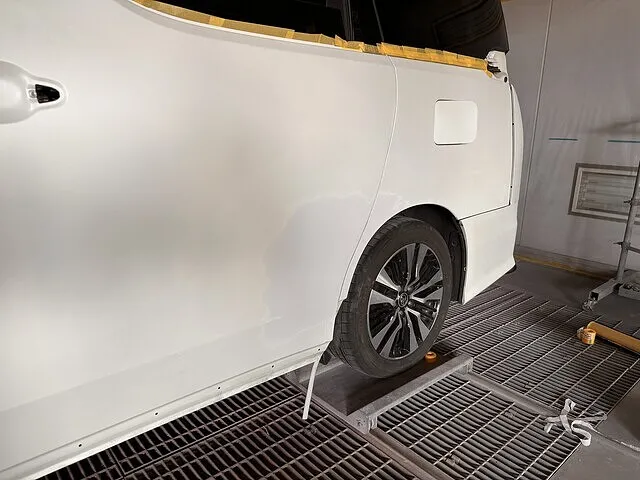 スライドドア・リアフェンダーについた擦り傷を鈑金塗装で綺麗に修復していきます。