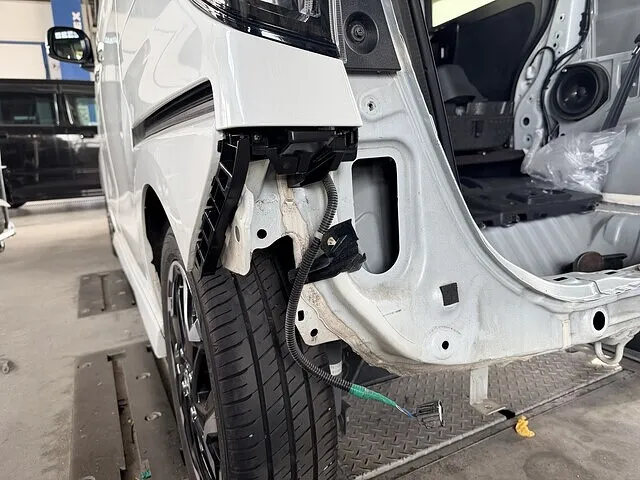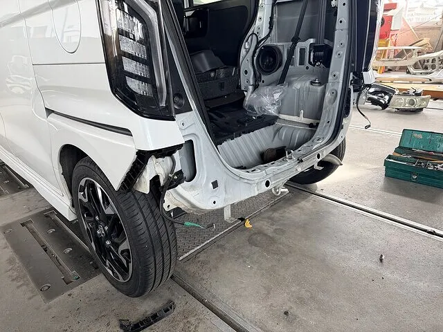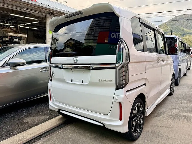 宇田津町在住のお客様より、ホンダ N-BOXの事故修理(リアバンパー・バックドア)のキズ・へこみ修理のご依頼をいただきました。