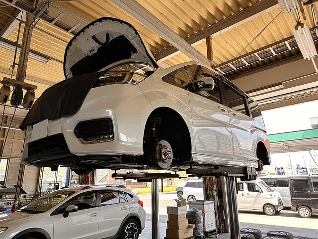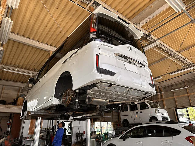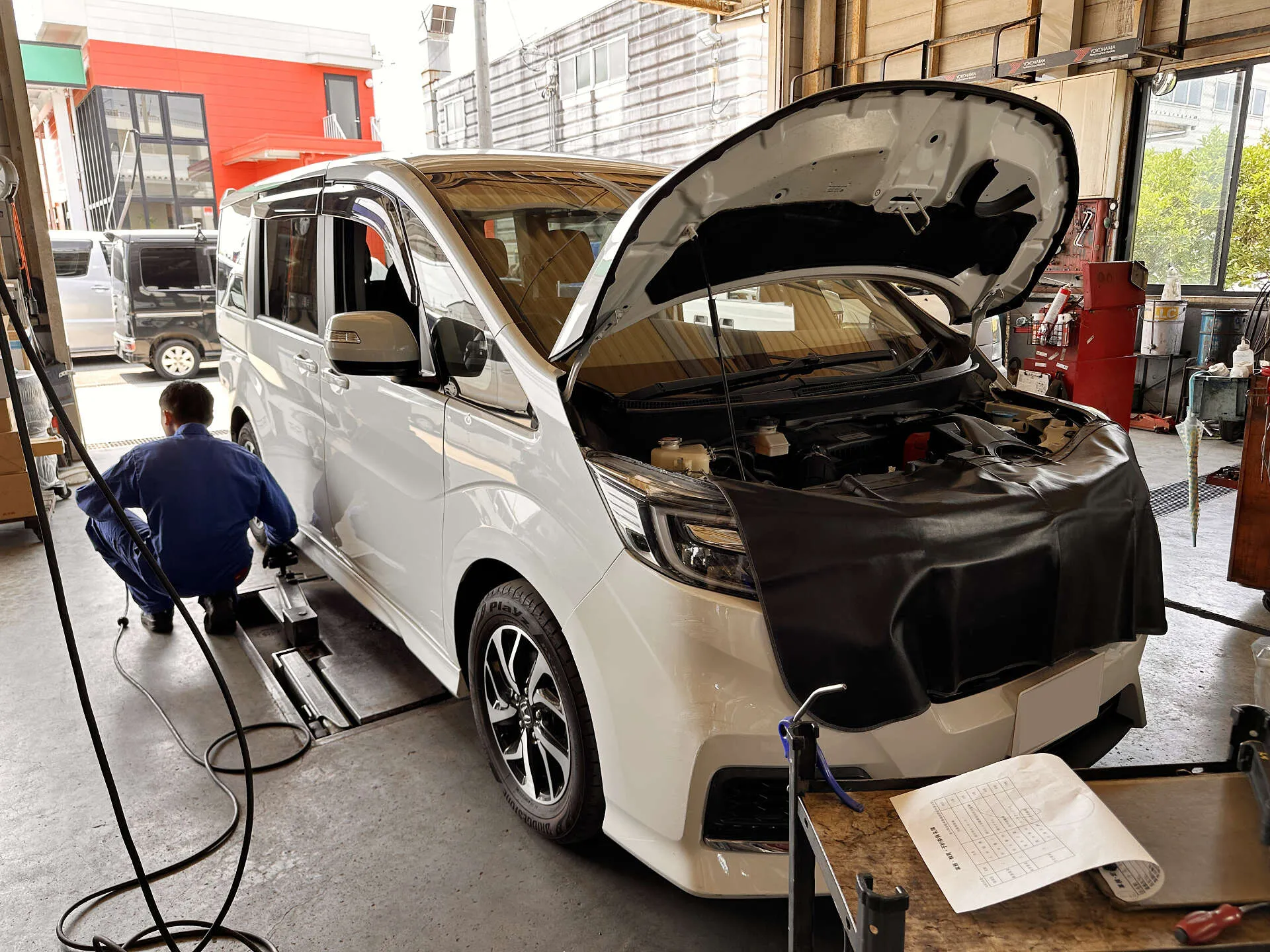 ホンダ ステップワゴンの車検にて、エンジンオイル交換・オイルエレメント交換・ブレーキパッド交換を行いました。