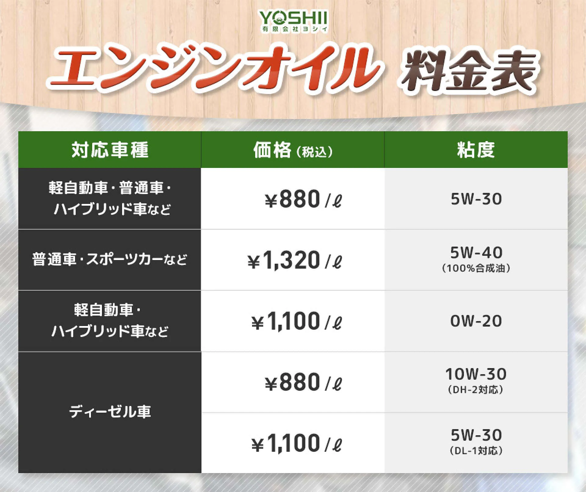 有限会社ヨシイでは、国家資格を持つ整備士が在籍し、お車の状態に合わせた最適なオイルをご提案しております。